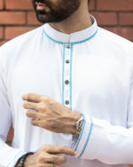 সাদা কালার মাইক্রোস্টিজ এমব্রয়ডারি লাক্সারি পাঞ্জাবি